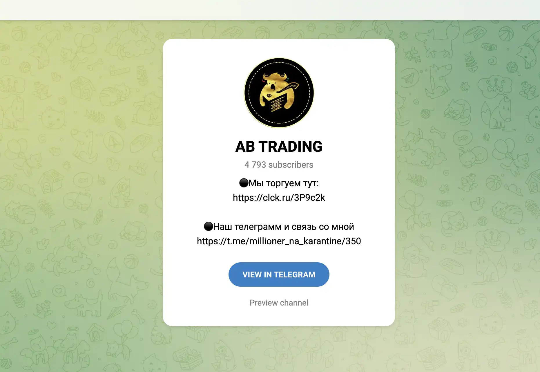 Канал AB TRADING / @millioner_na_karantine может выглядеть привлекательно: сигналы, обещания обучения, мотивация. Но на данный момент я не рекомендую слепо доверять или выделять значительные средства без проверки.