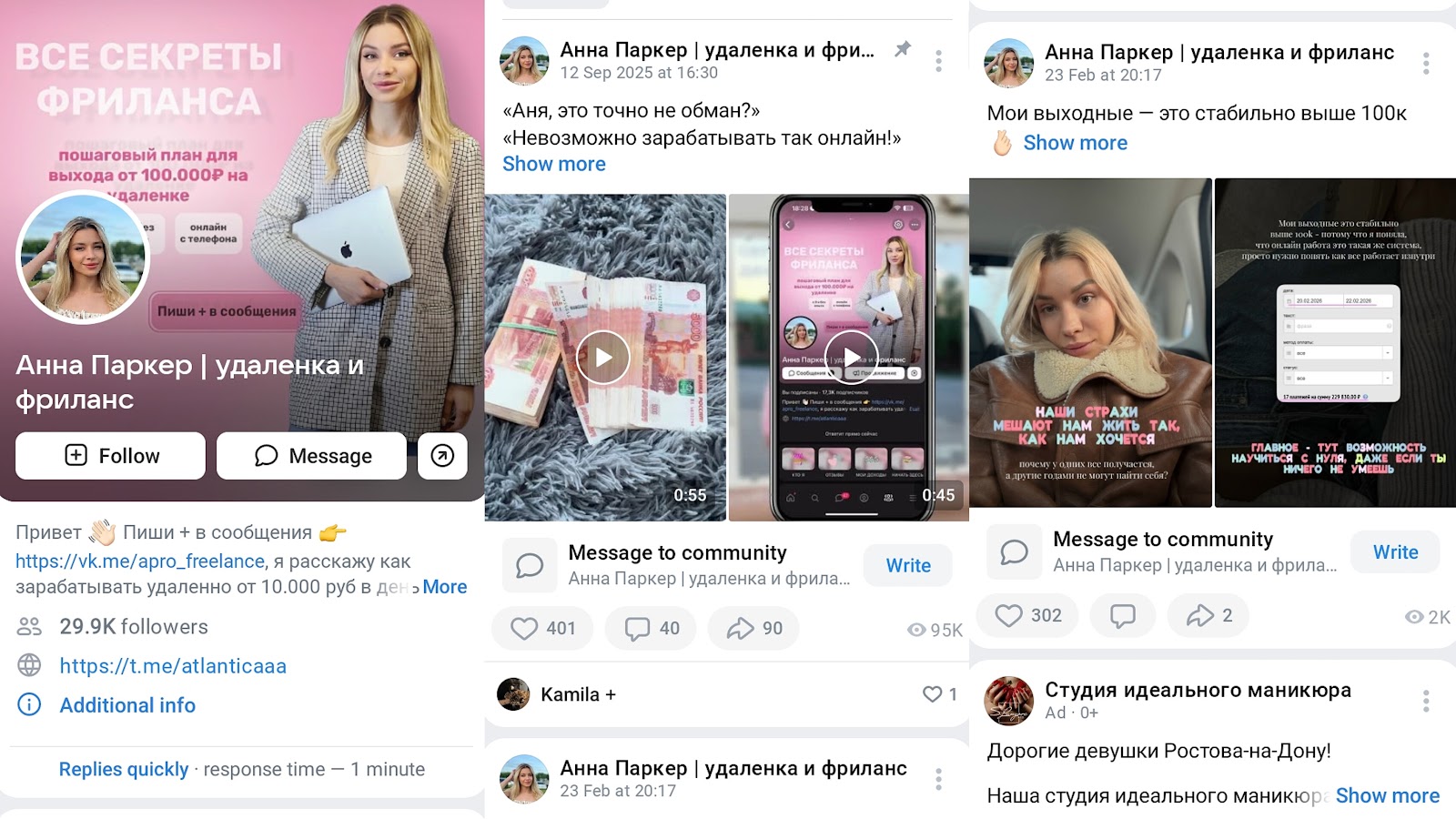 Создательница масштабного сообщества vk.com/apro_freelance позиционирует себя как эксперт высочайшего уровня в сфере онлайн заработка. На баннерах и в рекламных постах мелькают завораживающие цифры: сто тысяч рублей в месяц в качестве стартового дохода, миллионные обороты и полная свобода действий. Сама наставница утверждает, что зарабатывает баснословные суммы, демонстрируя в качестве доказательств лишь аккуратно обрезанные скриншоты сомнительного происхождения. В мире реальных финансов такие гарантии доходности всегда вызывают легкую улыбку, ведь любой адекватный специалист понимает, что стабильный заработок зависит от колоссального количества переменных факторов, начиная от ситуации на рынке и заканчивая личными навыками исполнителя. Обещать новичку безусловный доход в десятки тысяч рублей ежедневно — это все равно что обещать человеку, впервые севшему за руль, победу в профессиональных гоночных соревнованиях. Вся эта магия цифр призвана исключительно для того, чтобы зацепить внимание потенциального клиента и заставить его поверить в чудодейственную силу предлагаемого обучения. Разумеется, за возможность прикоснуться к этим сакральным знаниям придется заплатить из собственного кармана.