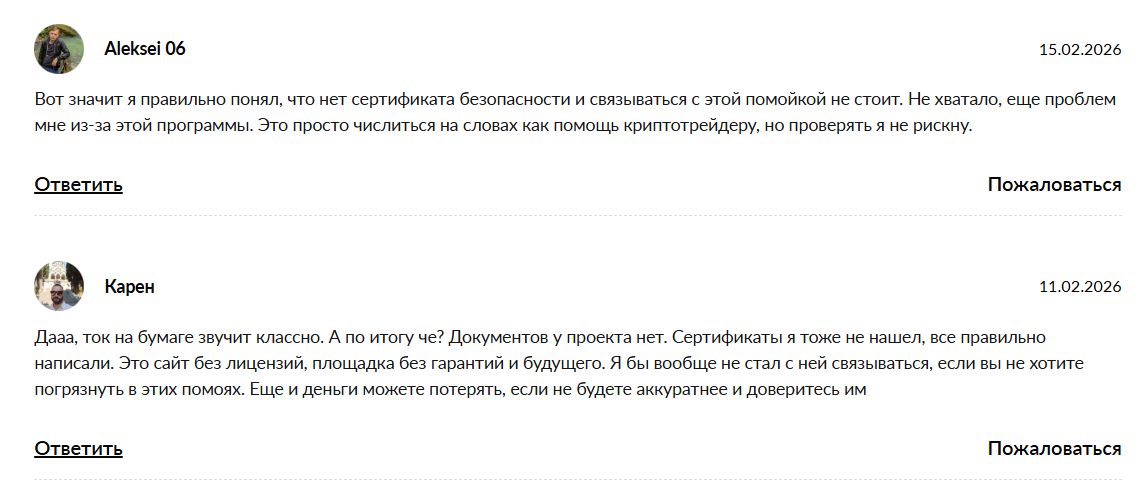 С юридической точки зрения проект представляет собой полнейший хаос. Оператором платформы выступает некое ИП, что моментально снижает уровень ответственности перед клиентом до нуля. У конторы нет статуса лицензированного инвестиционного советника, а значит, за любые финансовые потери после использования их «сигналов» никто отвечать не собирается. Доверять свои бюджеты анонимным алгоритмам — это путь в никуда.