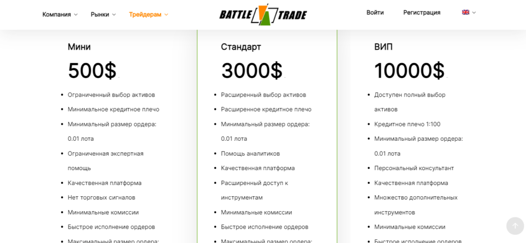 Итак Battle Trade предлагает нам торговать на финансовом рынке. На выбор здесь есть три торговых счета. Минимальный депозит составит 500 долларов. Поэтому потерять вы можете сразу довольно серьезные деньги. С контактной информацией здесь все очень печально. Все, что здесь есть так это только форма обратной связи. И именно ее используют админы для своих корыстных целей.