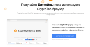 На главной странице платформы CryptoTab browser всем желающим предлагают скачать программу (браузер), которая якобы работает в восемь раз быстрее, чем Гугл Хром. Кроме этого эта чудо-программа имеет встроенный алгоритм, при помощи которого вы сможете добывать криптовалюту. Якобы у этого браузера функционал и интерфейс внешне схож с Google Chrome, но работает программа намного лучше, и кроме этого вы сможете зарабатывать деньги. На всех страницах этого проекта как мантра упоминается высокая работоспособность самого браузера и высокая скорость майнинга.