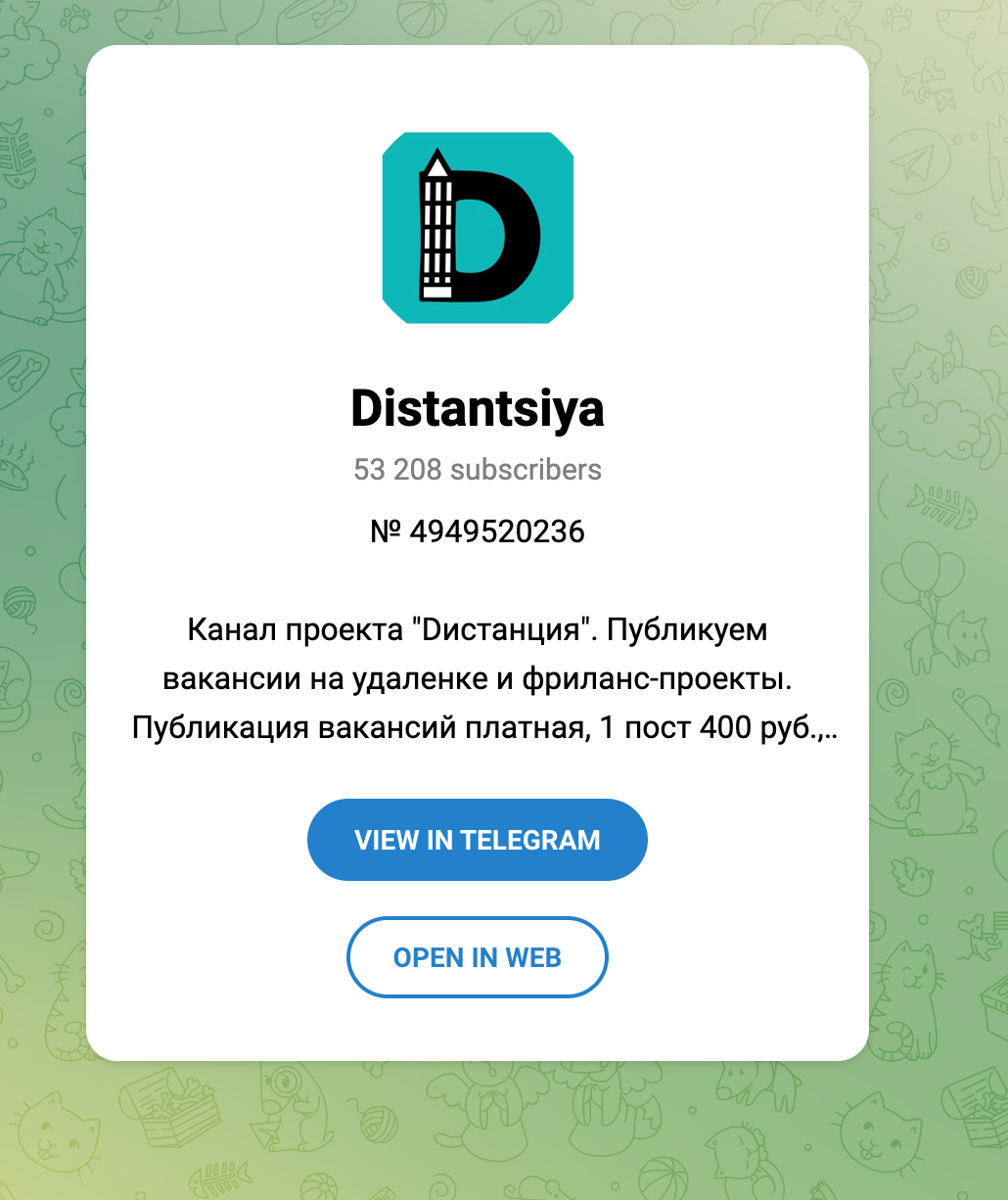 | Ссылка на канал | https://t.me/distantsiya |