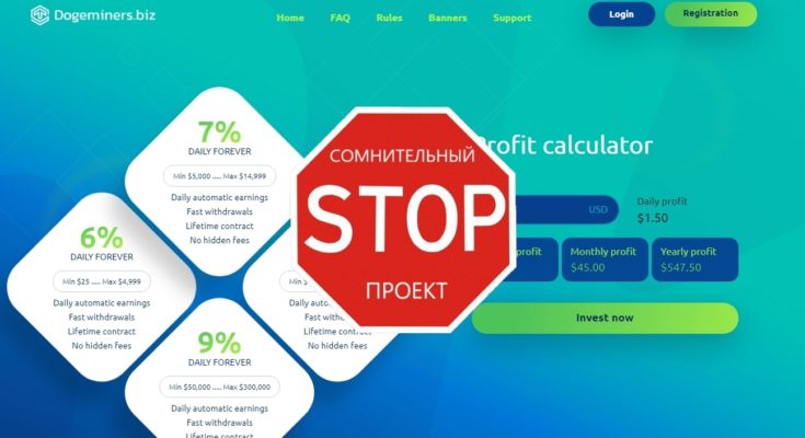 DogeMiners – инвестиционная компания, которая якобы представляет собой криптовалютного брокера, и предлагает всем желающим зарабатывать на инвестициях в эту самую криптовалюту. Если вы во все это верите, то лучше вам вообще не пользоваться интернетом. Просто потому, что это все дичь, не имеющая ничего общего с реальным положением дел. На самом деле данный проект представляет собой не более чем высокодоходный хайп, который, к тому же, не заслуживает никакого доверия.