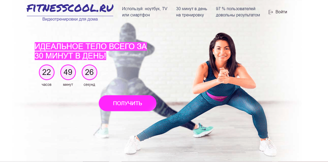 Никакой легенды здесь нет вообще. В принципе вообще никакого описания. Это как вообще? Все, что мы с вами видим, так это только девушку в спортивной одежде. И громкий лозунг о том, что нужно всего лишь 30 минут в день для идеальное дела. И все, что от вас требуется это приобрести видео курсы. Звучит чуть не как сказка. Но именно на это и делают уклон админы.