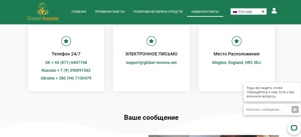 Global Income — это лживый мошеннический проект, котоый берет очень большие деньги за бесплатную информацию, которую можно спокойно найти в интернете. Будьте предельно осторожны и просто проходите мимо подробных предложений в сети. Иначе вы рискуете нарваться на аферистов и потерять все свои деньги. Предупредите своих близких.