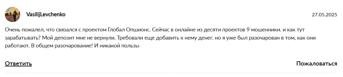 Global Options обзор и отзывы