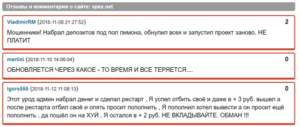 Несмотря на то, что проект «Лесоруб» еще не работает и месяца, у него уже был проведен рестарт и об этом свидетельствует информация, которую опубликовали на сайте — New start 10 ноября 2018 21:00. То есть, создатель платформы насобирал денег с доверчивых пользователей, а потом взял и обнулил все. Прекрасный выход, ведь не нужно ничего платить, а можно сделать рестарт и положить себе деньги в карман. Пользователи не оценили такую хитрую тактику и пишут в интернете, что данный проект является мошенническим и ему не стоит доверять.