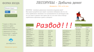 В сети интернета нами была обнаружена новая финансовая пирамида под названием «Лесоруб». Этот проект обещает немалый заработок при помощи новейшей и уникальной технологии. Но, как и другие финансовые пирамиды, заработать на таких проектах могут только их создатели. Впрочем, нет ничего удивительного в этом, ведь такие сайты создаются для того, чтобы выкачать денег из доверчивых пользователей. Пока будут находиться наивные люди, эта пирамида будет жить и выманивать деньги.