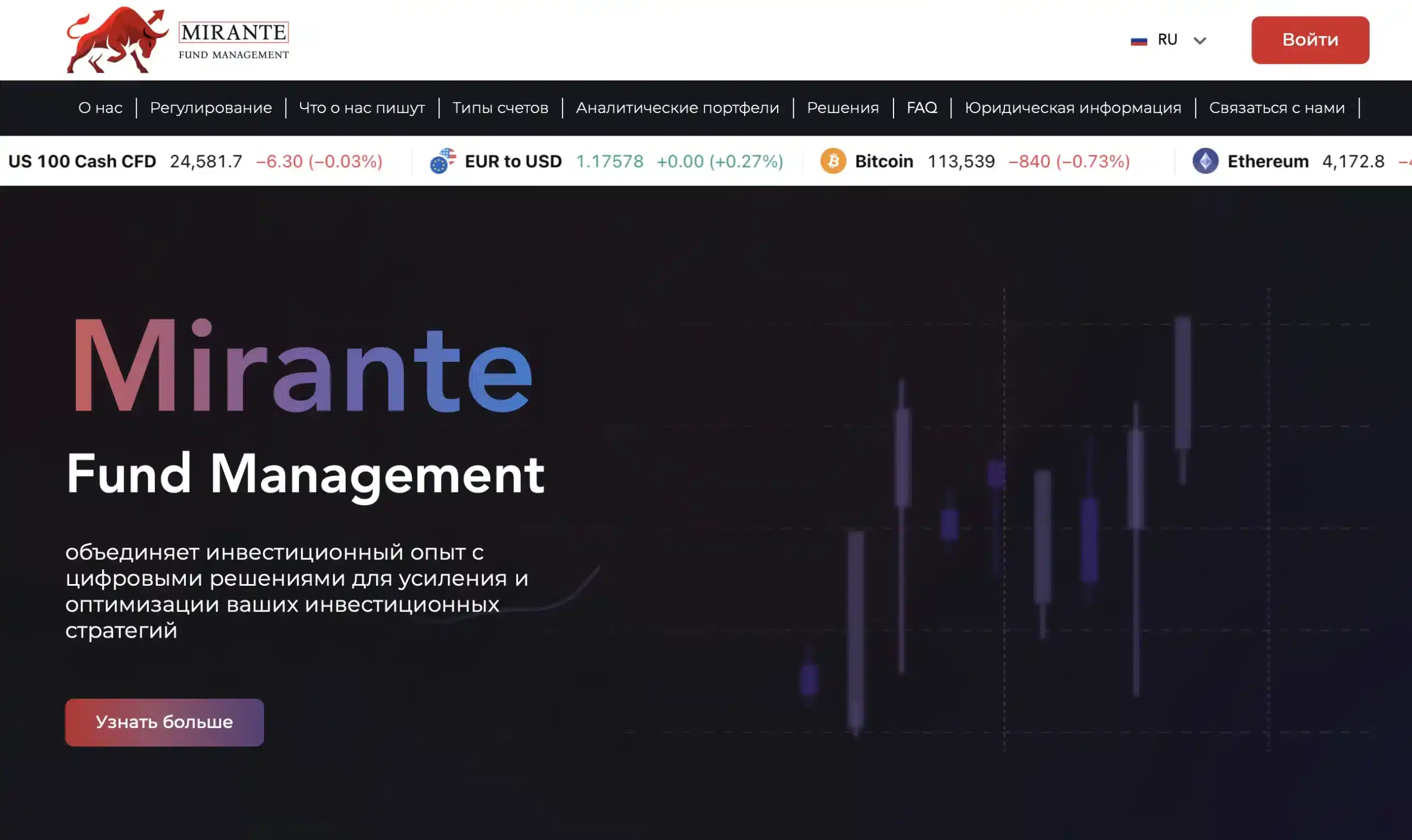 Мир финансовых проектов в интернете сегодня огромен. Сайты появляются практически каждый день, предлагая «выгодные инвестиции» и быстрый заработок. Одним из таких является mirante-fund-management.com, позиционирующий себя как компания с профессиональным подходом к управлению капиталом. Но чем глубже смотришь на проект, тем больше вопросов возникает. Именно поэтому многие ищут Mirante Fund Management отзывы, чтобы понять, стоит ли доверять свои деньги.