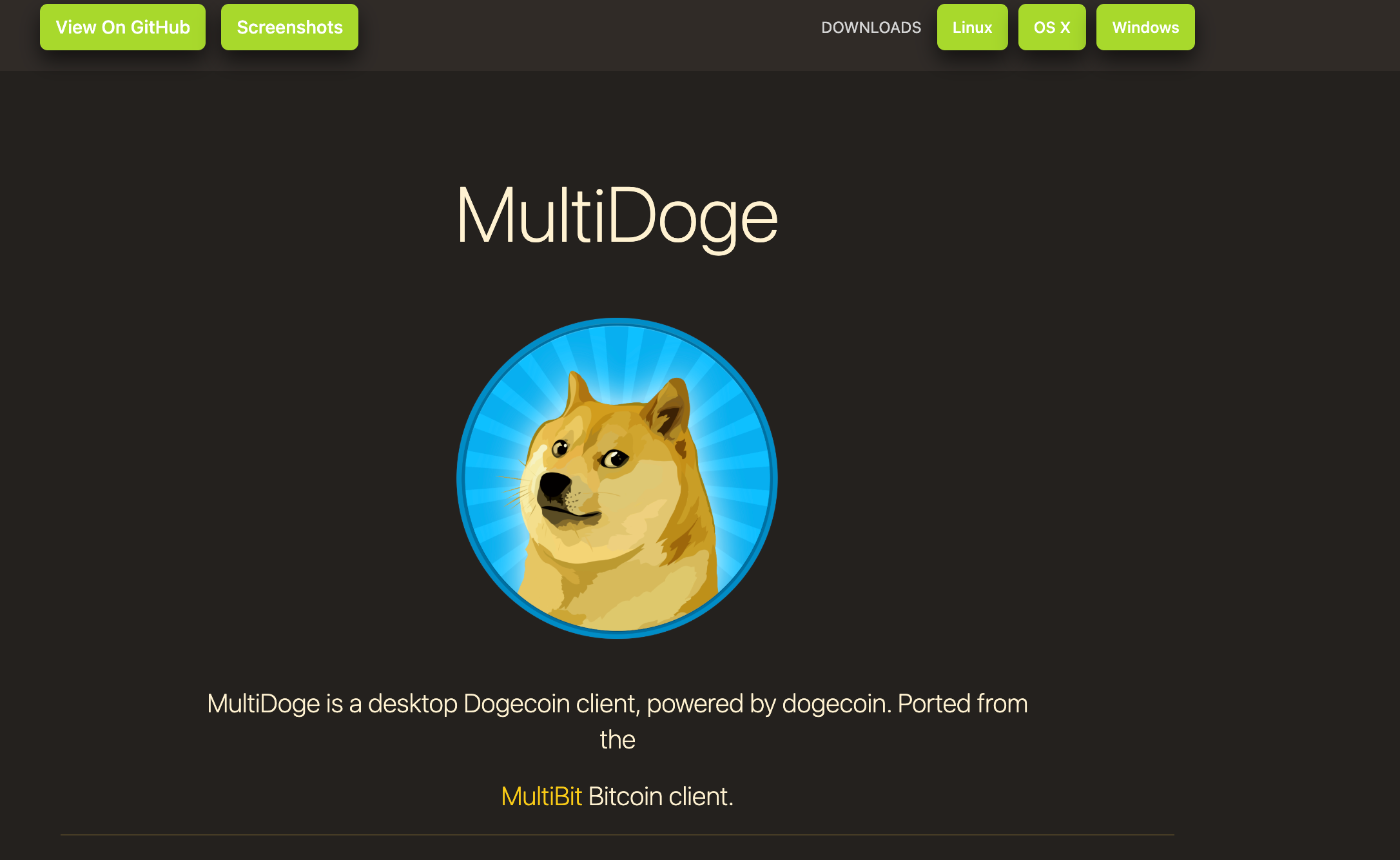 Итак, MultiDoge — это лёгкий кошелек для криптовалюты Dogecoin с долгая история и простая конструкция. Он предназначен тем пользователям, которые хотят хранить DOGE у себя локально и не предъявляют высоких требований к своей системе.