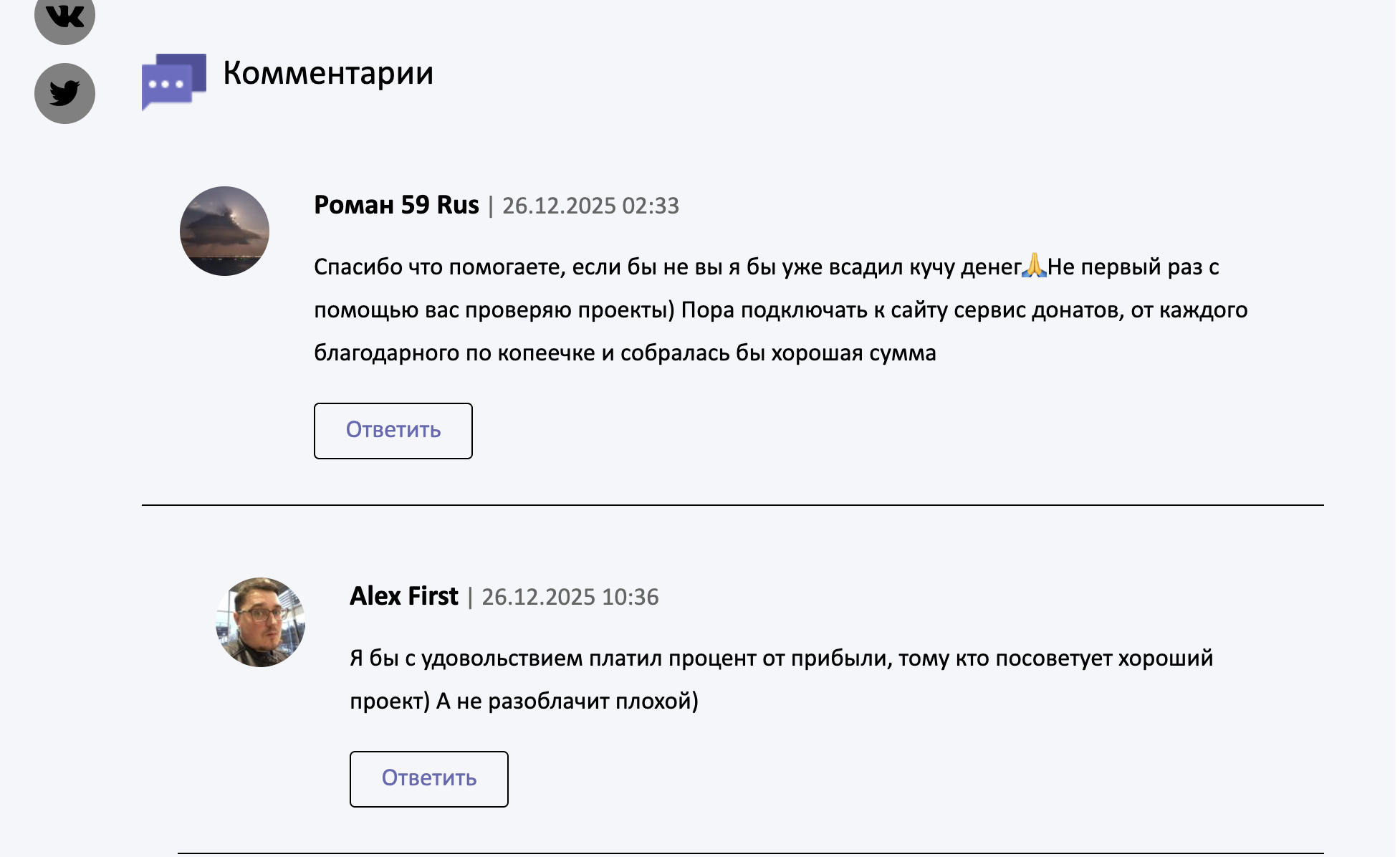 Такая разнородность мнений — не редкость для новых проектов, но она показывает: у пользователей нет единого положительного опыта, который можно было бы рассматривать как подтверждение заявленных возможностей.