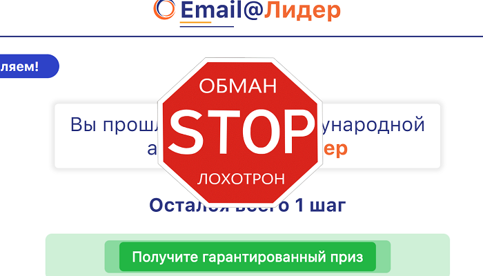 Онлайн-мошенники для того чтобы придать убедительности своим лохотронам дают сайтам весьма представительные названия. Например — международная акция, супер-викторина и так далее. Мы нашли в интернете аферистский сайт под названием Email@Лидер, который ее авторы называют ежегодной международной акцией, в которой можно гарантированно выиграть много денег. Это конечно обычное вранье для заманивания глупых людей, которые покупаются на такие онлайновые разводы.