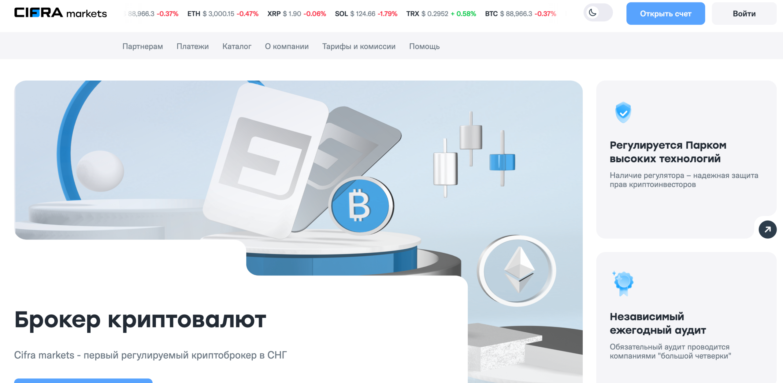 Что касается юридического сайта брокера, то он расположен по ссылке https://cifra.by/. На этом сайте размещается информацию об услугах, условиях обслуживания, а также для взаимодействия с клиентами через личные кабинеты и формы обратной связи.