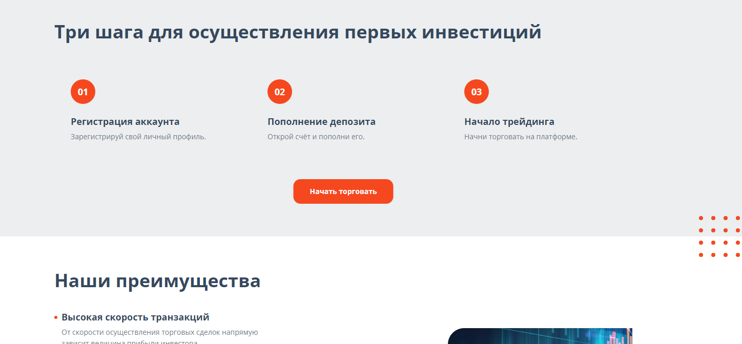 Клиенты получат стандартные условия сотрудничества. Торговать можно на современной торговой платформе с целым ассортиментом дополнительных инструментов. Минимальный депозит 1000 долларов. На старте представители платформы будут помогать новичкам быстро разобраться в торговле и начать зарабатывать деньги.