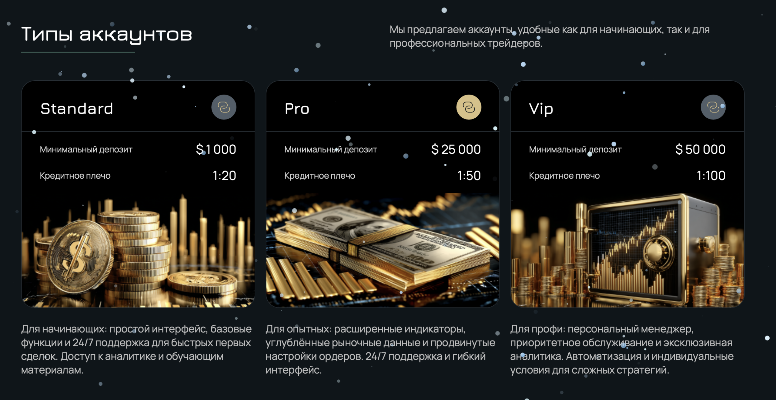На деле информации на сайте мало: нет конкретики по комиссиям, типам аккаунтов или лимитам на вывод. Минимальный депозит скрыт за регистрацией, а условия плечевого кредитования (до 1:500) упоминаются вскользь, без акцента на риски. В 2026 году такие сайты часто ориентированы на быстрый приток пользователей, но отсутствие образовательных материалов или демо-режима делает их менее привлекательными для серьёзных трейдеров. Платформа кажется скопированной с шаблона — это не редкость, но снижает доверие.
