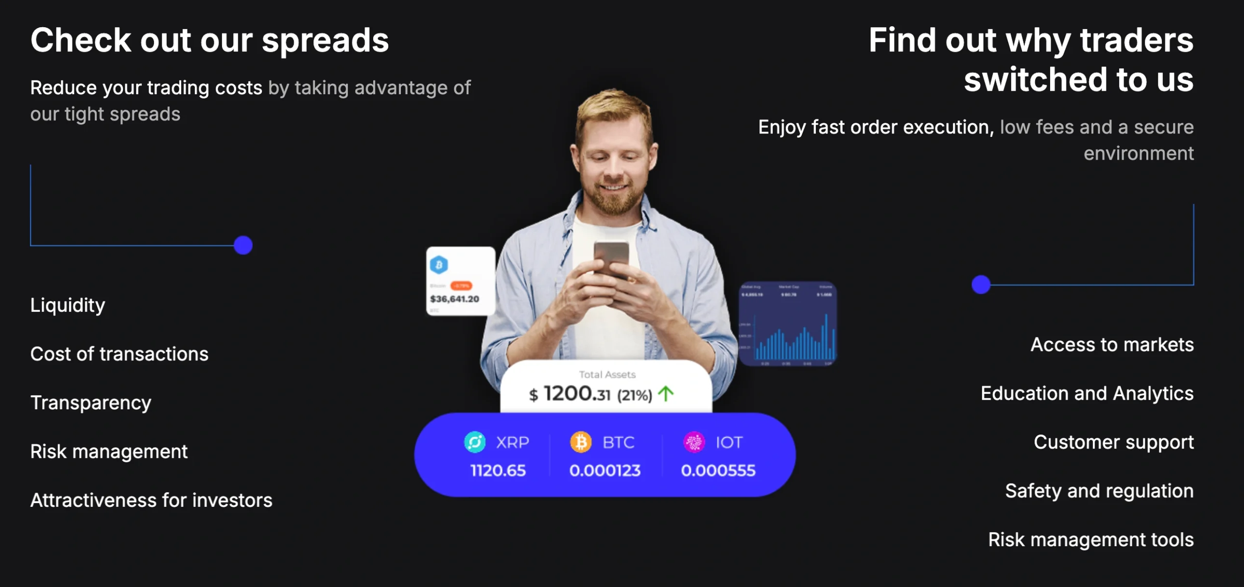 Кроме того, интерфейс сайта, хотя и выглядит профессионально, содержит множество общих фраз и обещаний, которые не подкреплены реальными фактами. Например, утверждения о «гарантированной прибыли» или «минимальных рисках» являются явным преувеличением, так как торговля на финансовых рынках всегда связана с высокими рисками.