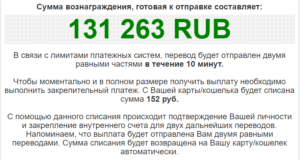 Далее на лохотронческом сайте Вest Аsk появляется надпись, что наши ответы передаются в корзину сортировки, после этого нам создают внутренний счет. А потом перед нами появляется надпись о том, что средства успешно зачислены на внутренний счет, но из-за того, что платежные системы установили лимиты, перевод они будут выполнять двумя равными частями в течение десяти минут. Но если мы хотим быстро получить деньги, то нужно выполнить закрепительный платеж, сумма которого составляет 152 рубля. Вот ради этого аферисты и создавали свою фейковую викторину – им нужно, чтобы вы заплатили им деньги.