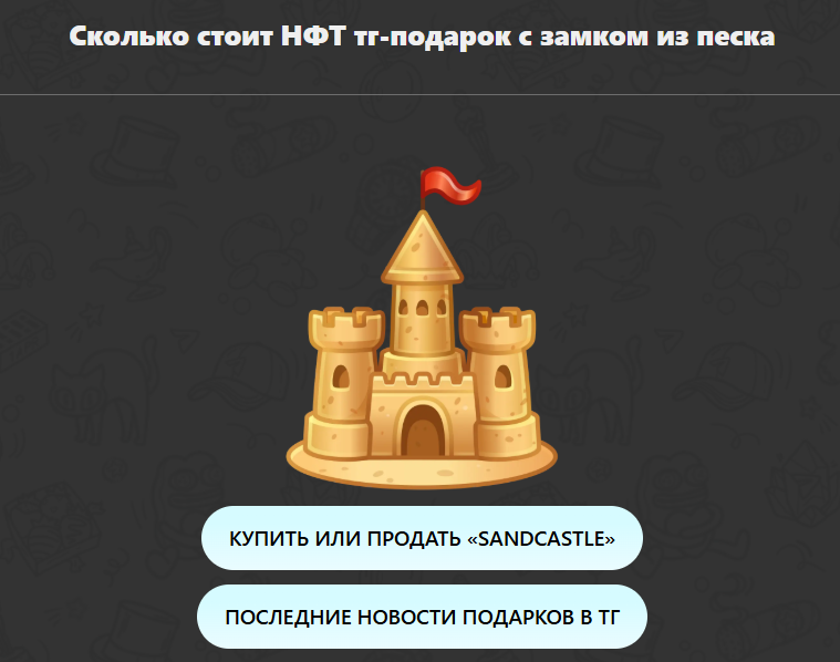 Коллекция появилась на свет в августе 2025 года и была приурочена ко дню рождения Telegram. Разработчики предложили аудитории 150 000 уникальных изображений с песчаными замками на разных фонах. Изначальная цена составляла около 8 долларов (или 500 звезд), и вся партия была раскуплена за считанные минуты.