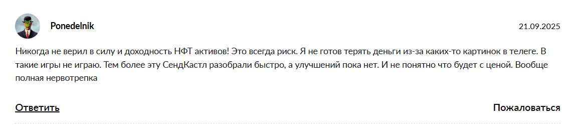 Самая парадоксальная ситуация складывается с обратной связью. Если попытаться найти честные Sandcastle отзывы, вас встретит звенящая пустота. В русскоязычном сегменте практически нет реальных комментариев от живых коллекционеров, которые бы хвастались успешными перепродажами. Для проекта с таким огромным тиражом подобное молчание выглядит крайне подозрительно. Отсутствие прозрачных Sandcastle отзывы не позволяет оценить реальную ликвидность актива и настроения сообщества.