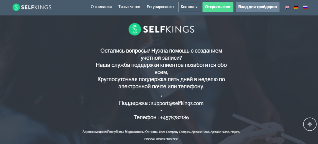 С 2012 года Selfkings является лидером онлайн-трейдинга, признанным профессионалами во всем мире. Управляемая одной из самых опытных и авторитетных финансовых компаний. Selfkings гордится своим достоянием – репутацией, которую она зарабатывает ежедневно за счет привлечения большего числа клиентов и постоянных выплат.