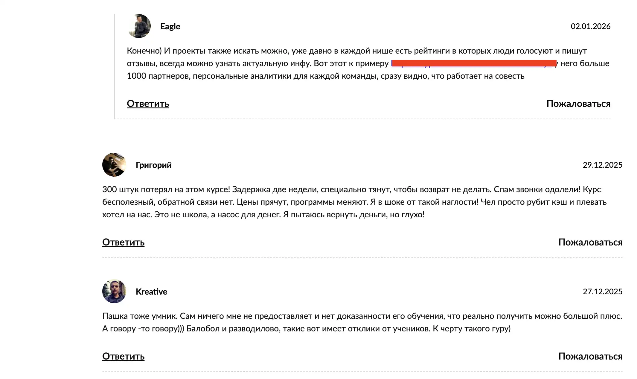 Однако значительная часть отзывов негативная или осторожная. Пользователи жалуются на несоответствие ожиданий: «Много воды на вебинарах, базовая информация, которую можно найти бесплатно». Некоторые разочарованы поддержкой после оплаты: задержки в ответах, отсутствие индивидуального подхода в дорогих пакетах. Часто упоминается, что материал устаревший или слишком общий, без уникальных инструментов. В 2026 году отзывы подчёркивают: результаты зависят от личных усилий, а не от «волшебной формулы».