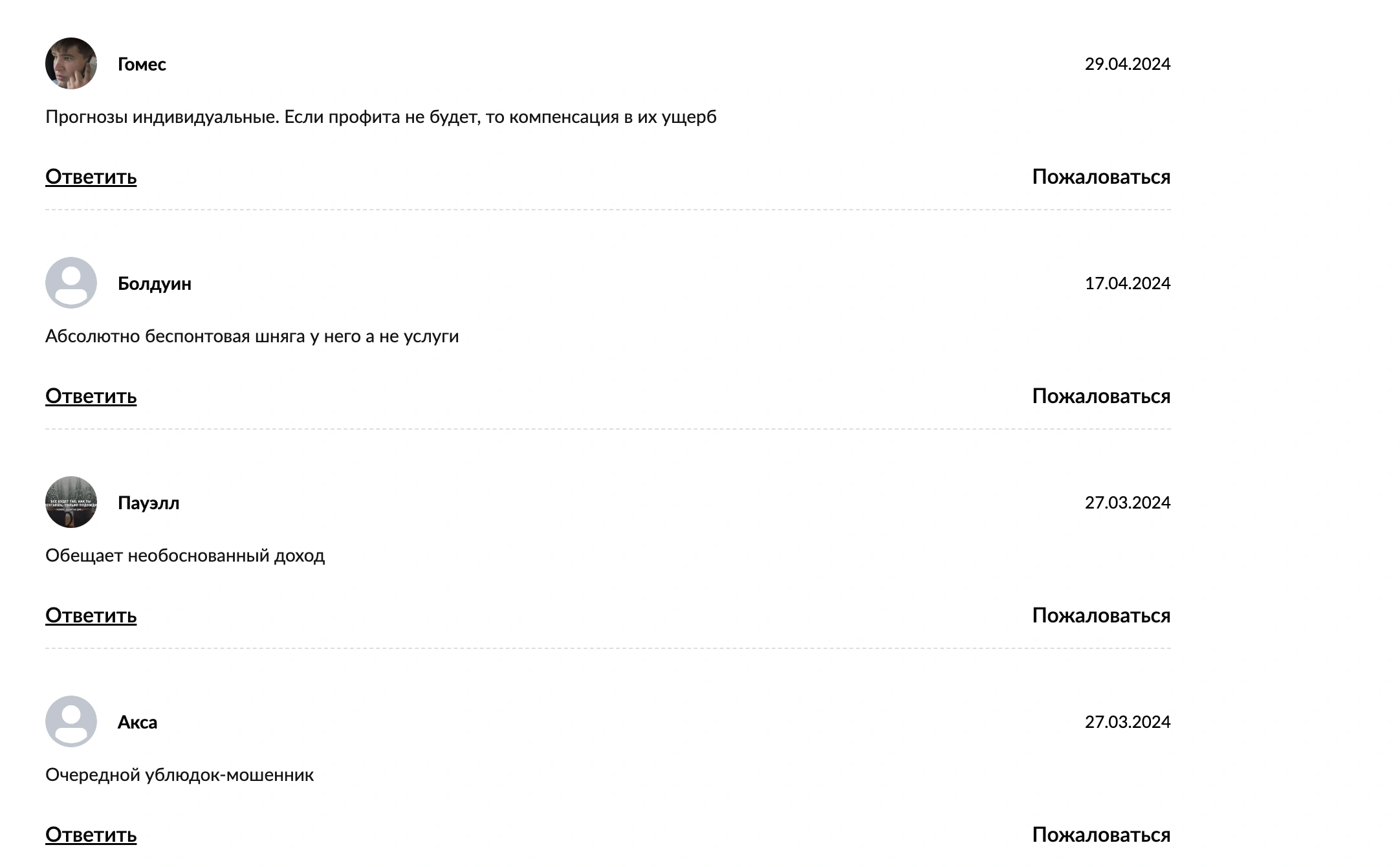 Подписчики канала рискуют не только потерять деньги, следуя сомнительным сигналам, но и стать жертвами финансовых махинаций. Отсутствие прозрачности, манипуляции с отзывами и скрытая личность администратора создают благоприятные условия для мошенничества.