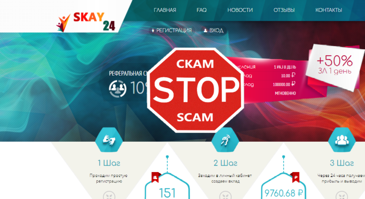 Мошеннический проект Skay24 имеет лишь одну цель – грабёж наивных пользователей сети, склонных верить в неприкрытую и глупую ложь. Это обман – не кормите аферистов!