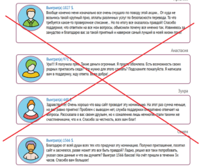 Отзывы, которые вы увидите на этом проекте липовые. Они написаны самими администраторами, которые пытаются при помощи фейковых комментариев повысить доверие к этому разводу. Несмотря на то, что на сайте имеется надпись о том, что отзыв можно оставить после получения приза, форма для комментариев там отсутствует. Крутится значок, якобы форма должна загрузиться, но так и не появляется. Так что становится понятно. Что пользователи свои отзывы там оставить не могут.
