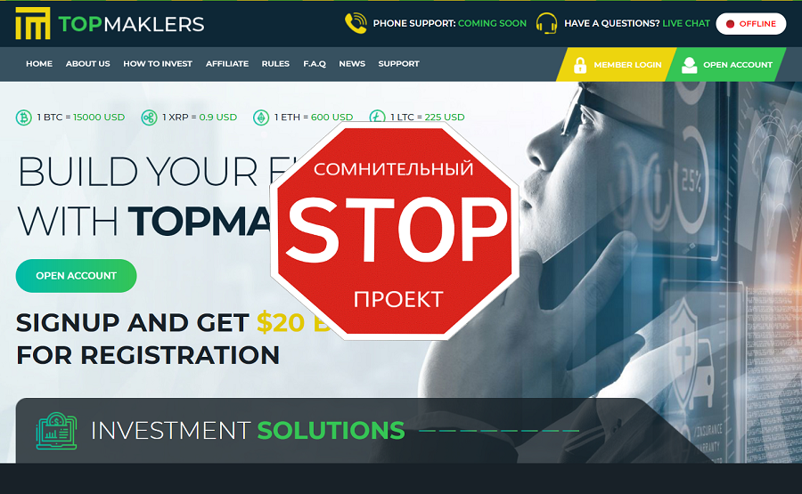 Сегодня каждая вторая финансовая пирамида прикидывается британской компанией, торгующей криптовалютой. На практике же мы имеем дело с русскими школьниками, неспособными освоить английский язык и использующими автоматический перевод. Top Maklers – не исключение.