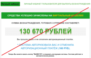 Чтобы вывести эти деньги мошенники предлагают нам войти в аккаунт с временным паролем и для этого нужно нажать на кнопку с соответствующим названием. Далее мы переходим на следующую страницу этого лохотрона, где видим надпись о том, что средства успешно зачислены на виртуальный кошелек. Но за счет того, что мы не оплатили авторизационный платеж в сумме 160 рублей, деньги нам вышлют только тогда, когда мы перечисли аферистам эту сумму. Далее нам требуется нажать на кнопку «Вывести вознаграждение» и после нажатия мы оказываемся на странице, где мошенники предлагают нам выбрать, куда перечислять деньги – на карту банка или на электронный кошелек. Затем нужно нажать на кнопку «Закрепить реквизиты».