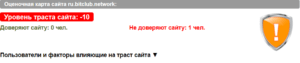 Получается все более странной ситуация, проект пытается привлечь деньги в майнинг криптовалюты, но зарегистрироваться в клубе ВitClub Network невозможно. Для чего это сделано – мне трудно судить, возможно какие-то психологические расчеты, на основе которых добившийся регистрации потом инвестирует намного больше денег. Но если проверить данный ресурс на доверие к нему в сети интернета, то мы узнаем, что уровень траста у этого сайта составляет минус 10. Получается, что данному клубу не особо верят и вкладывать в него деньги не будут.