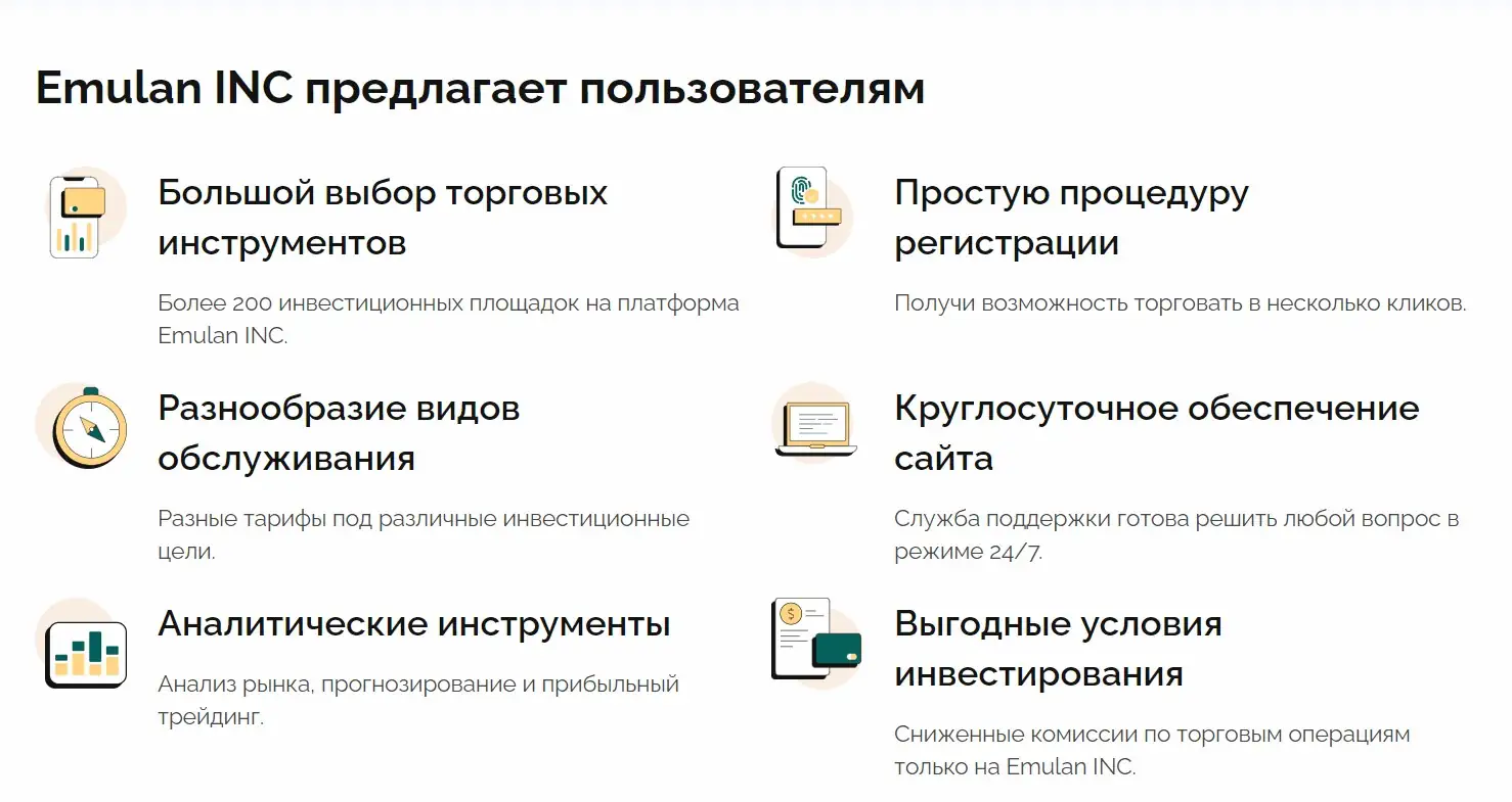 Emulan INC — позиционирует себя, как самую лучшую площадку, для торговли и трейдинга. Которая сможет подойти не только опытным трейдерам, но и новичкам. Работает компания с 2019 года. На сегодняшний день,имеет около 17 000 активных трейдеров. На самом деле перед нами лживый брокер. Создавался он только лишь для того, чтобы разводить людей на приличные деньги. Этот персонаж ищет именно доверчивых людей, которые совсем не разбираются в трейдинге.