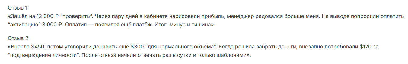Классическая картина взаимодействия с платформой выглядит узнаваемо Начинается всё с настойчивых звонков представители компании рассказывают про огромную клиентскую базу безупречную работу и лицензирование Пользователю рисуют понятный путь зарегистрироваться внести депозит получить сопровождение Затем начинается сервис постоянные звонки подталкивание к увеличению суммы рассказы про срочные сделки На этом этапе человек часто перестаёт думать критически раз так настойчиво помогают значит всё под контролем Спойлер в том что контроль остаётся у платформы а не у клиента