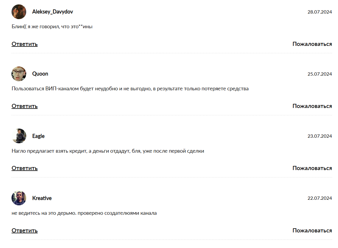 Но есть один малюсенький нюанс: чтобы получить доступ к тем самым «золотым» и «эксклюзивным» сигналам, нужно обязательно купить VIP-подписку. Цена за этот заветный пропуск в мир убытков обычно кусается, но создатель красноречиво уверяет, что вы отобьете эти затраты буквально за пару успешных сделок. На деле же, покупая доступ, вы просто спонсируете красивую жизнь администратора. Никаких тайных знаний, глубокой аналитики или инсайдерской информации там нет. Вам будут кидать скопированные у других авторов сигналы, которые с вероятностью в 99% приведут ваш торговый депозит к печальному и полному обнулению.