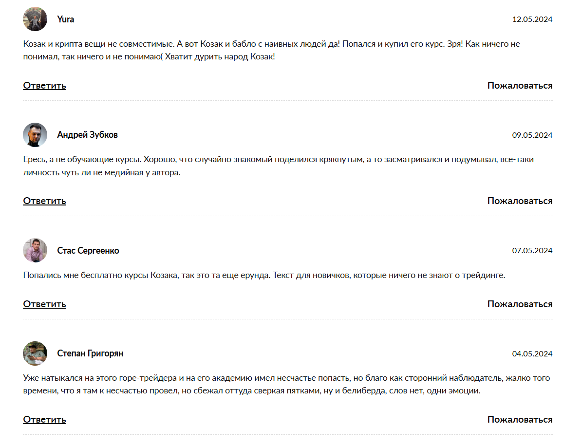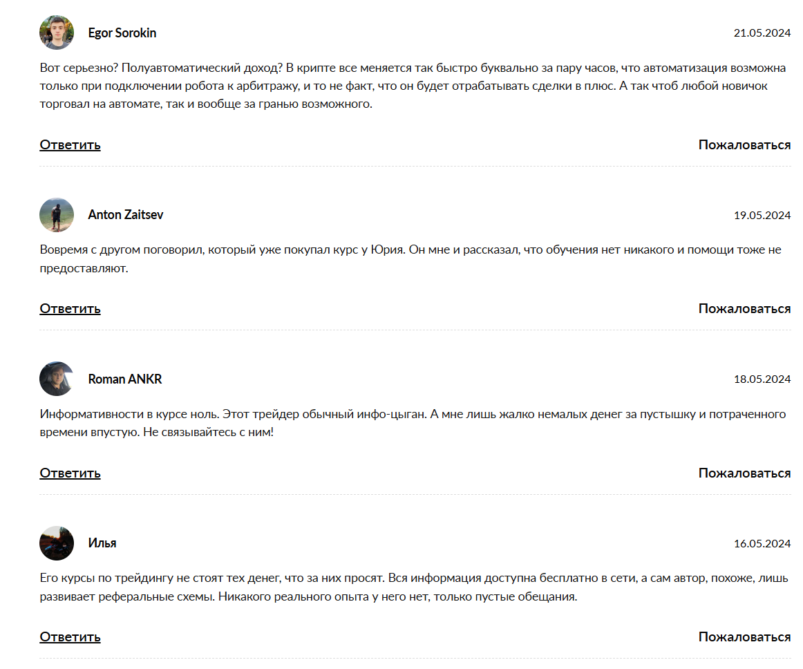 Для поддержания иллюзии востребованности и экспертности в своих сообществах этот деятель развернул настоящую кампанию по самовосхвалению. Его каналы пестрят хвалебными видеоотзывами от якобы успешных учеников, которые в формате живого общения благодарят наставника за невероятные прибыли. Вот только любой здравомыслящий человек прекрасно понимает, как легко фабрикуются и покупаются подобные восторги на биржах фриланса. На независимых же ресурсах картина складывается диаметрально противоположная. Пользователи массово жалуются на то, что любая конструктивная критика в чатах моментально стирается, а недовольные клиенты безжалостно блокируются. Стоит вам только заикнуться о том, что стратегия не работает, как вы тут же отправляетесь в бан без объяснения причин. Такая жесткая цензура — излюбленный прием тех, кому есть что скрывать от общественности.