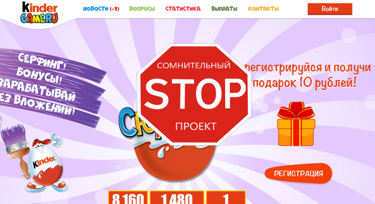 Ни для кого не секрет, что основной аудиторией большинства мошенников являются школьники, причём младше 6-7 классов, ведь именно они, в большинстве своём, слепо следуют своим кумирам, не принимают осмысленных решений, а также не пытаются проверять достоверность заливаемой в них информации. Однако, создатели kinder-game.ru решили посягнуть даже на младшеклассников, ведь их финансовая пирамида создана в стиле Киндер-Сюрприз.