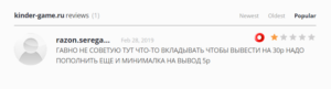 Второй – затягивание новых жертв в их схему развода, по которой за каждый новый депозит вам будут начислять по 10%, но мы бы не советовали принимать участие в ней даже самым маленьким, ведь создатели kinder-game.ru сохраняют полную анонимность, а, когда ловушка захлопнется, пострадавшие придут выяснять отношения именно к вам.